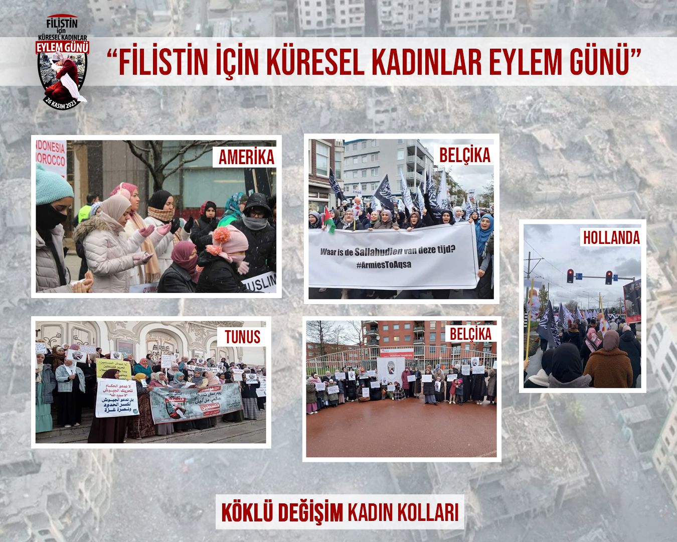 Kampanya kapsamında, Gazzeli kadın ve çocukları kurtarmak ve mübarek toprak Filistin’i işgalden kurtarmak amacıyla İslam dünyasındaki orduları hemen harekete geçmeye çağırmak üzere 26 Kasım’da “Filistin için Uluslararası Kadın Eylem Günü” düzenlendi. Eylem Günü, 5 kıtada bu çerçevede Filistin, Türkiye, Endonezya, Tunus, Lübnan, Malezya, Kenya, Amerika, Avustralya, Danimarka, Hollanda, Belçika ve İngiltere’deki kadınlar tarafından protestolar, seminerler ve aktiviteler düzenlendi.