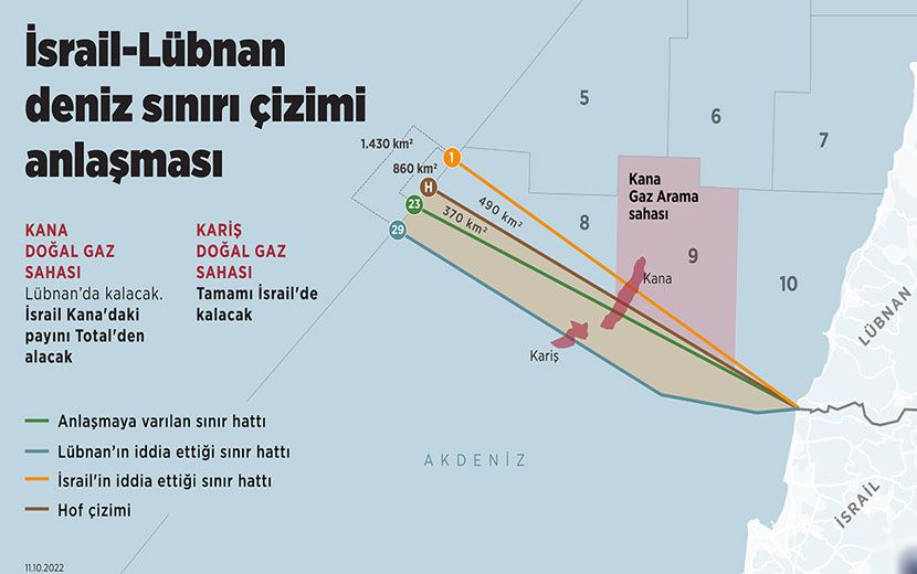 “İsrail” Başbakanı Lapid, 11 Ekim'de, Lübnan'la deniz sınırlarının çizilmesi konusunda anlaşmaya vardıklarını duyurmuştu.