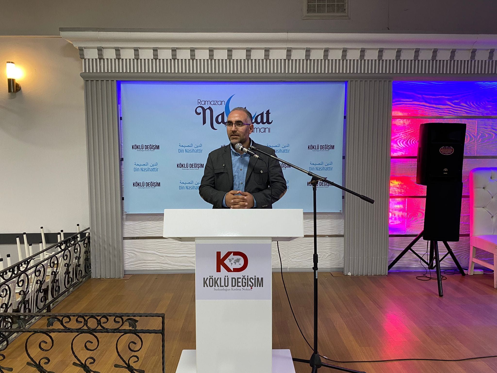 İftar sonrası cemaatle kılınan akşam namazının ardından Köklü Değişim yazarlarından ilahiyatçı Abdullah İmamoğlu, misafirlerimize yönelik “Ramazan Nasihat Zamanı” kampanyası kapsamında bir konuşma gerçekleştirdi.