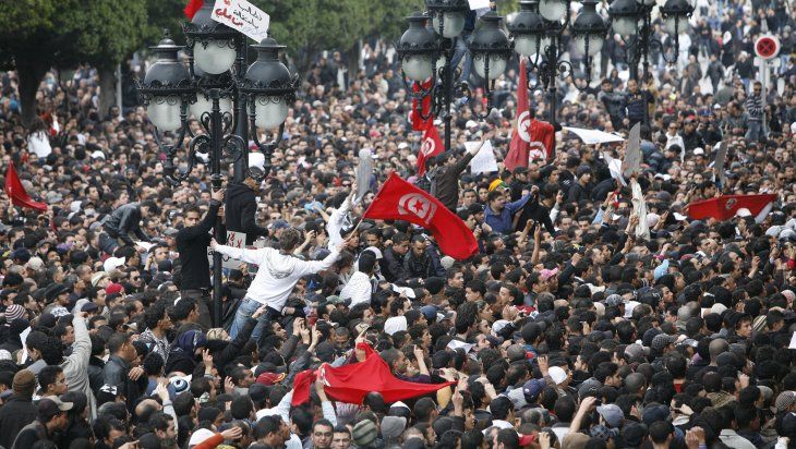 Tunus'ta 17 Aralık 2010'da üniversiteden mezun olduktan sonra iş bulamadığı için seyyar satıcılık yapan Muhammed Buazizi, polislerin seyyar tezgahına el koymasından sonra kendisini yakarak intihar etmişti. Yaşanan olay 23 yıllık Zeynel Abidin Bin Ali iktidarını deviren ve "Yasemin Devrimi" olarak bilinen geniş çaplı halk protestolarına yol açmıştı.